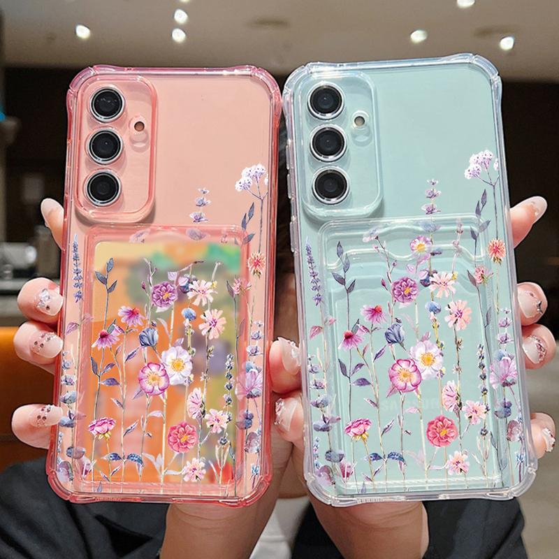 Pouzdro s motivem karty, peněženka, telefon, pro Samsung Galaxy A56, A55, A25, A15, A16 5G, S25 Edge, S23, S22 Ultra, S24 FE, měkké TPU kryty s malými květinami