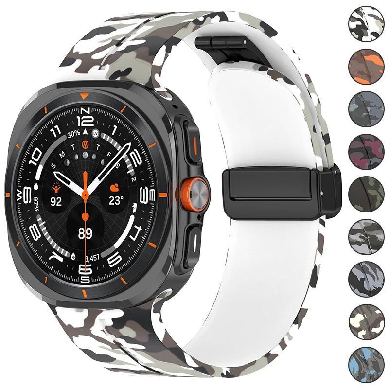 Camouflage Band for Samsung Galaxy Watch Ultra 47mm Silicone Magnetic Bracelet for Galaxy Watch 7 Ultra Replacement Watchband