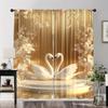 2 Pcs Art Renaissance Style Gold Floral & Swan Curtains – Polyester for Elegant Bedroom & Living Room Decor