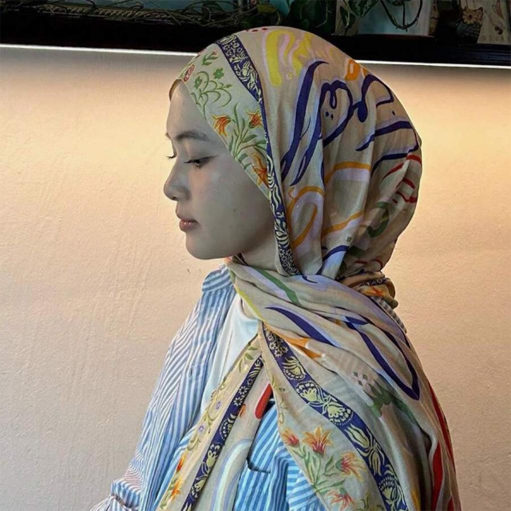 Watercolor Printed Cotton Linen Modal Shawl Hijabs New Design Malaysia Muslim Headscarf Islamic Head Cover Women Cotton Scarf