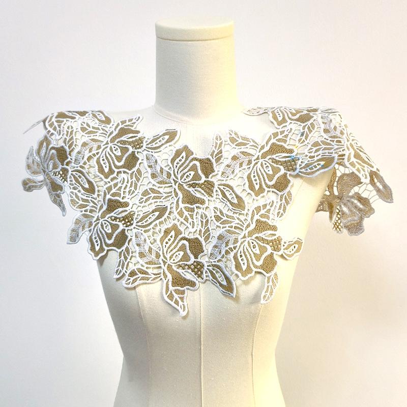 Water soluble lace, three-dimensional hollow, skirt flower, heavy industry yarn-dyed, apricot white two-color.