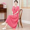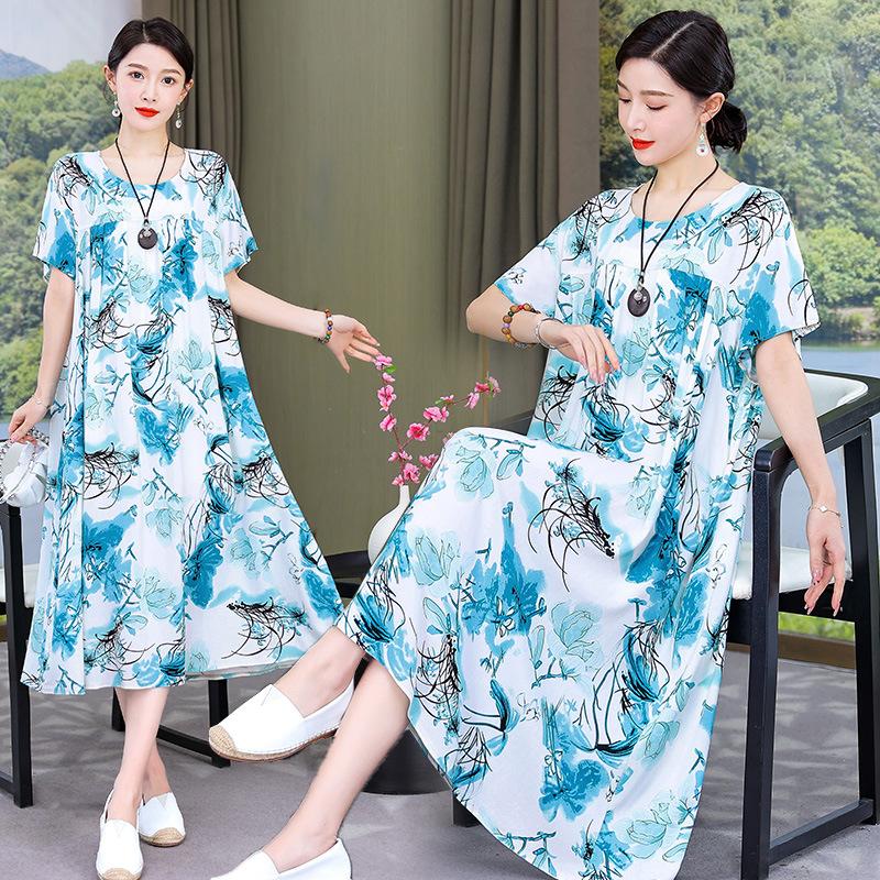 Letní dámské šaty nadměrných velikostí s lehkým, zralým a elegantním vzhledem, v prémiovém a elegantním stylu