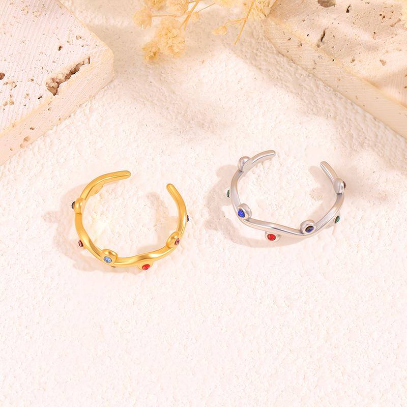 Colorful European & American Irregular Titanium Steel Open Ring with Non-Fading Diamond-Set