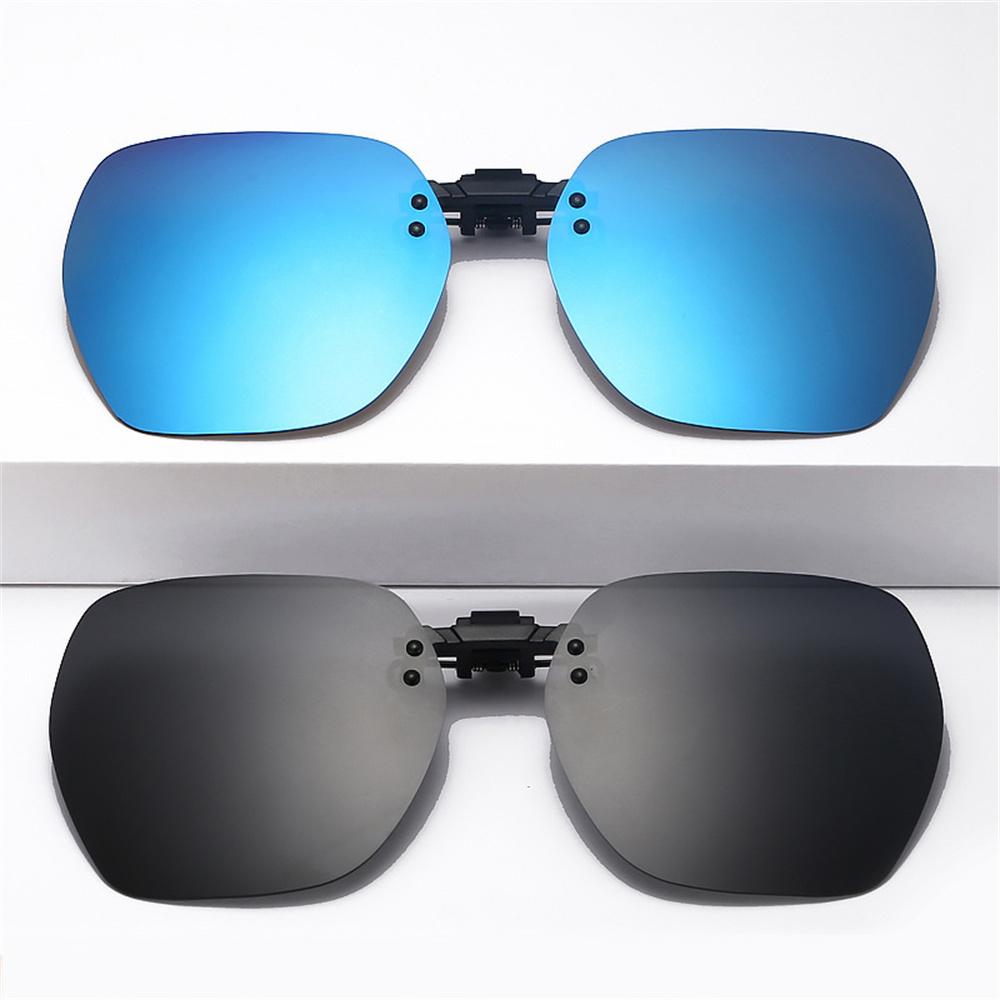 Polarized Sunglasses Clip Rimless Square Flip Up Glasses For Men Women Night Vision Clip On Eyeglasses Travel Driving Goggles