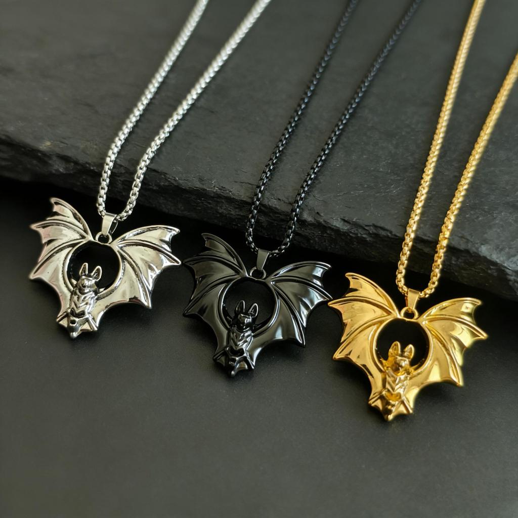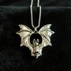 Gothic Bat Pendant Necklace with Metal Wings - Halloween Jewelry Charm Accessories