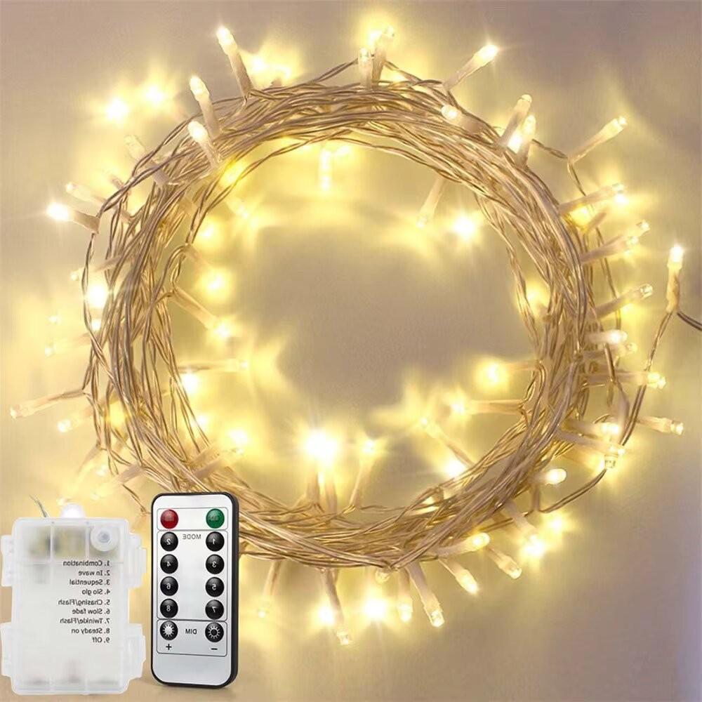 10m Waterproof LED String Lights - 100 LEDs, 8 Functions, Remote Controlled for Outdoor, Weddings, Festivals, and Christmas Tree Decorations