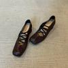 Vintage úzké boty na křížový pásek se čtvercovou špičkou a 'prasečím nosem', nízké baleríny
