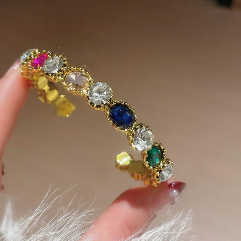 Elegantní Třpytivý Oválný Otevřený Náramek s Kamínky – Barevný, Módní & Univerzální Šperk