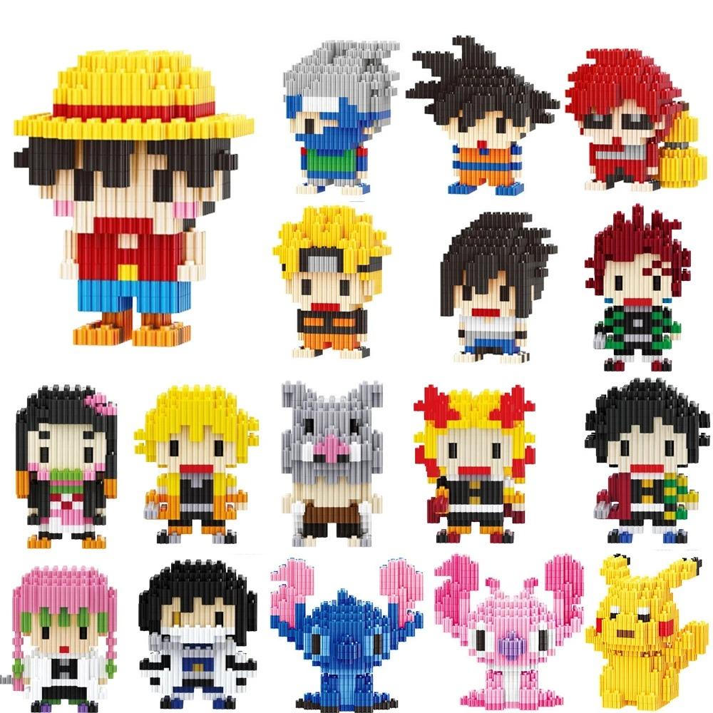 Linkgo Anime Connection Stavebnice Goku Luffy Demon Slayer Nezuko Stitch Pikachu Sasuke 3D Model Mini Cihlová Figurka Hračky