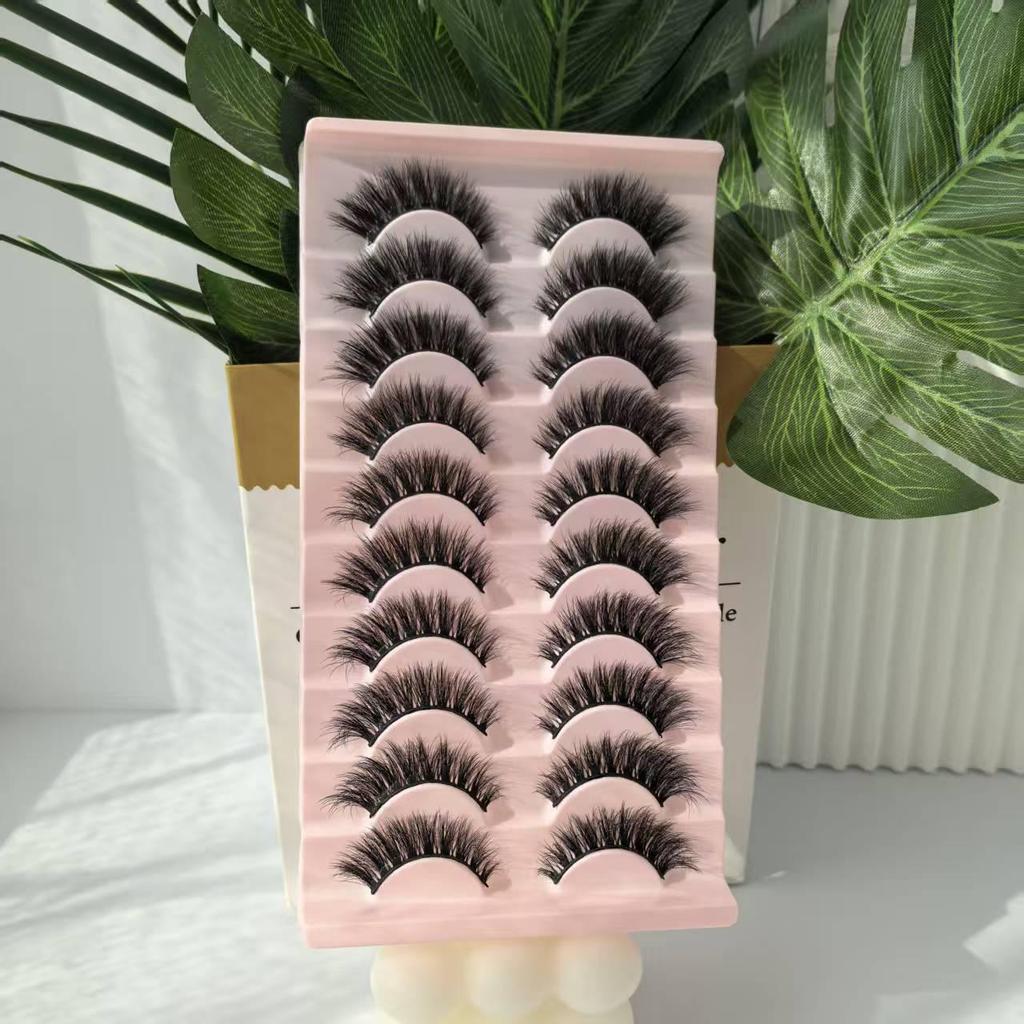 Balení 10 párů: Přírodní husté kadeřavé umělé řasy v evropském a americkém stylu.