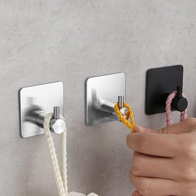 Stainless Steel No-Punch Wall Hook for Door, Clothes, or Hat - Traceless, Strong Adhesive, Single Hook