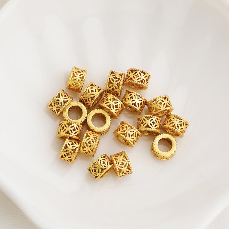 Gold-Plated Retro Coin Color-Retention Beads: Copper Hollow Spacer Beads for DIY Jewelry and Braided Rope Materials.