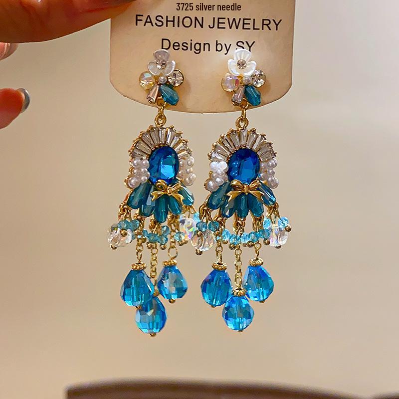 Náušnice s třásněmi ve tvaru mašle ze skleněných perel a stříbrné jehly - Luxusní retro etnický styl pecky pro ženy