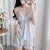 Women’s Summer Ice Silk Pajama Set Camisole Top and Shorts Sweet Sexy Pure Style Loungewear Sleepwear