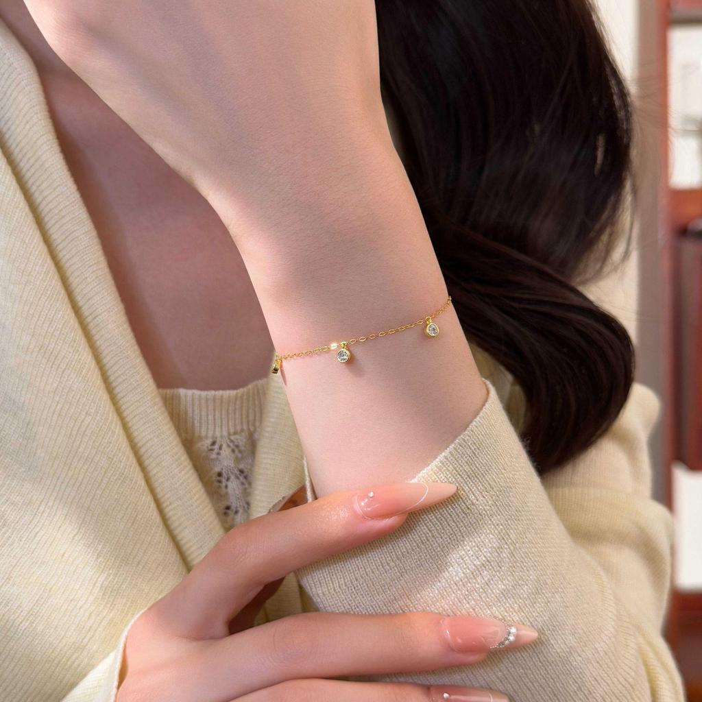 18K Gold-Plated S925 Sterling Silver Bubble Zircon Bracelet - Minimalist Japanese & Korean Style, Exquisite Star-Inspired Hand Jewelry.