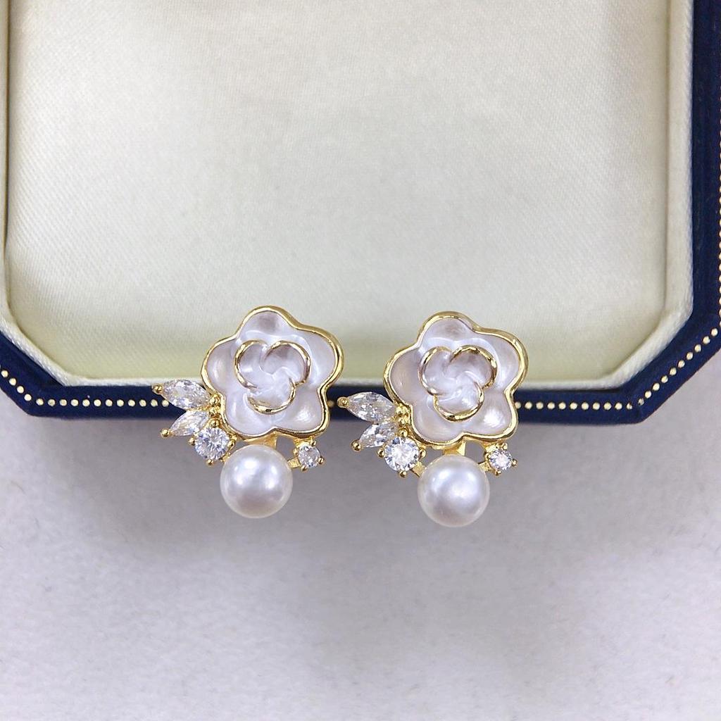 Zhuji Pearl French Classic Camellia Freshwater Pearl Stud Earrings Fashion High-End Women's Jewelry.
