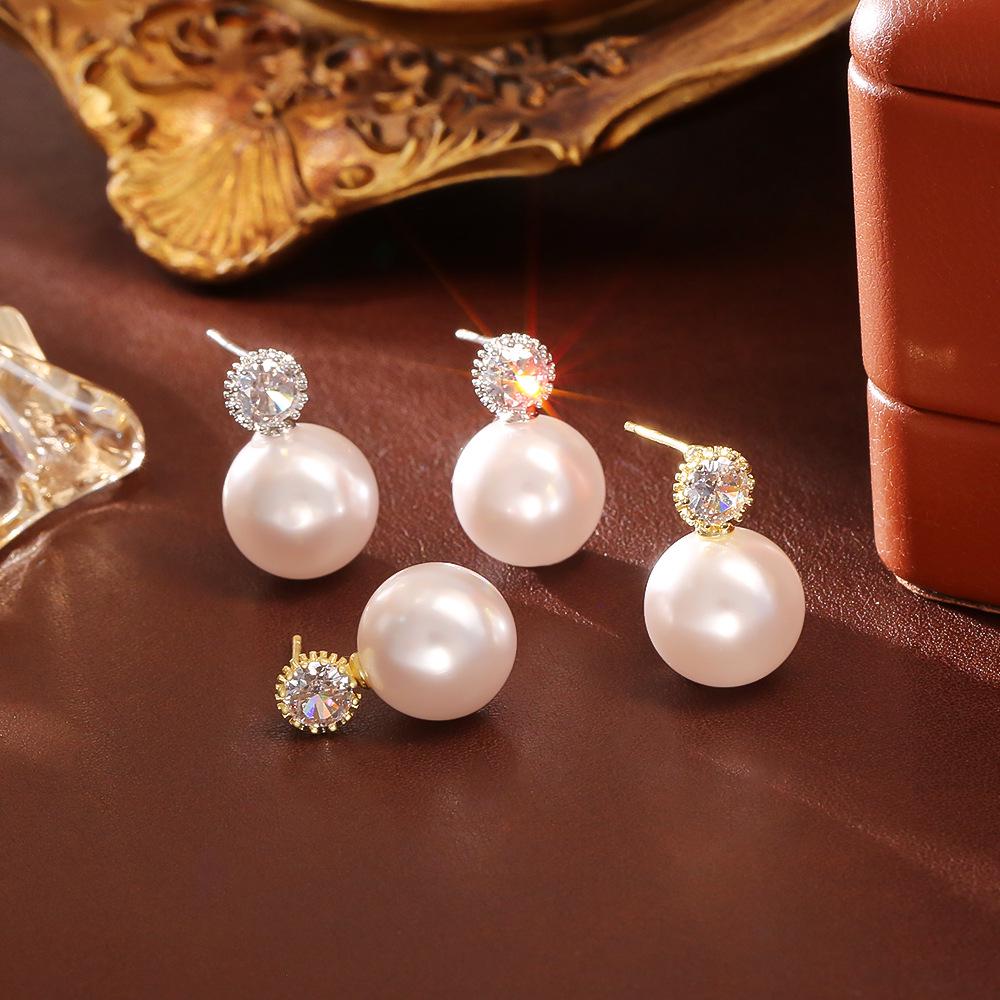 Zircon Pearl Stud Earrings: High-End Fashion, Versatile Silver Needles in Sweet, Popular Celebrity Style