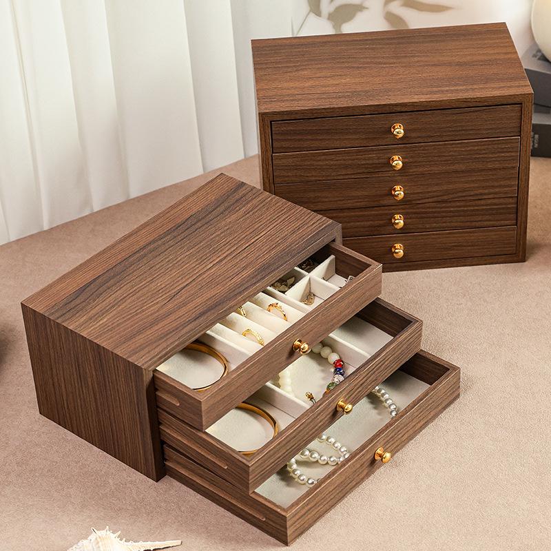Elegantní vícevrstvá dřevěná šperkovnice s velkou kapacitou na náhrdelníky, náramky a prsteny