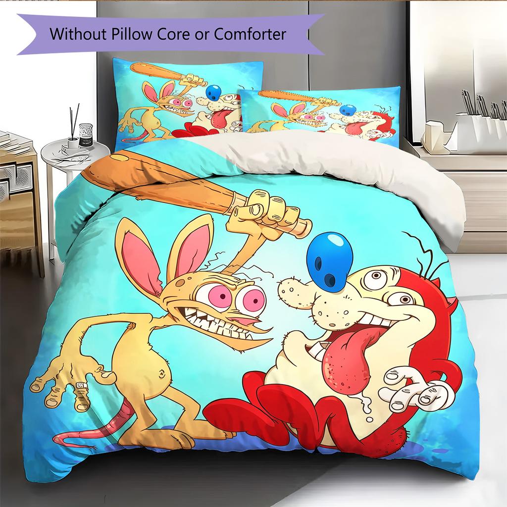 Ren & Stimpy Pattern Bedding Quilt Set Home Decoration Gift (1 * duvet cover + 2 * pillowcase without core)
