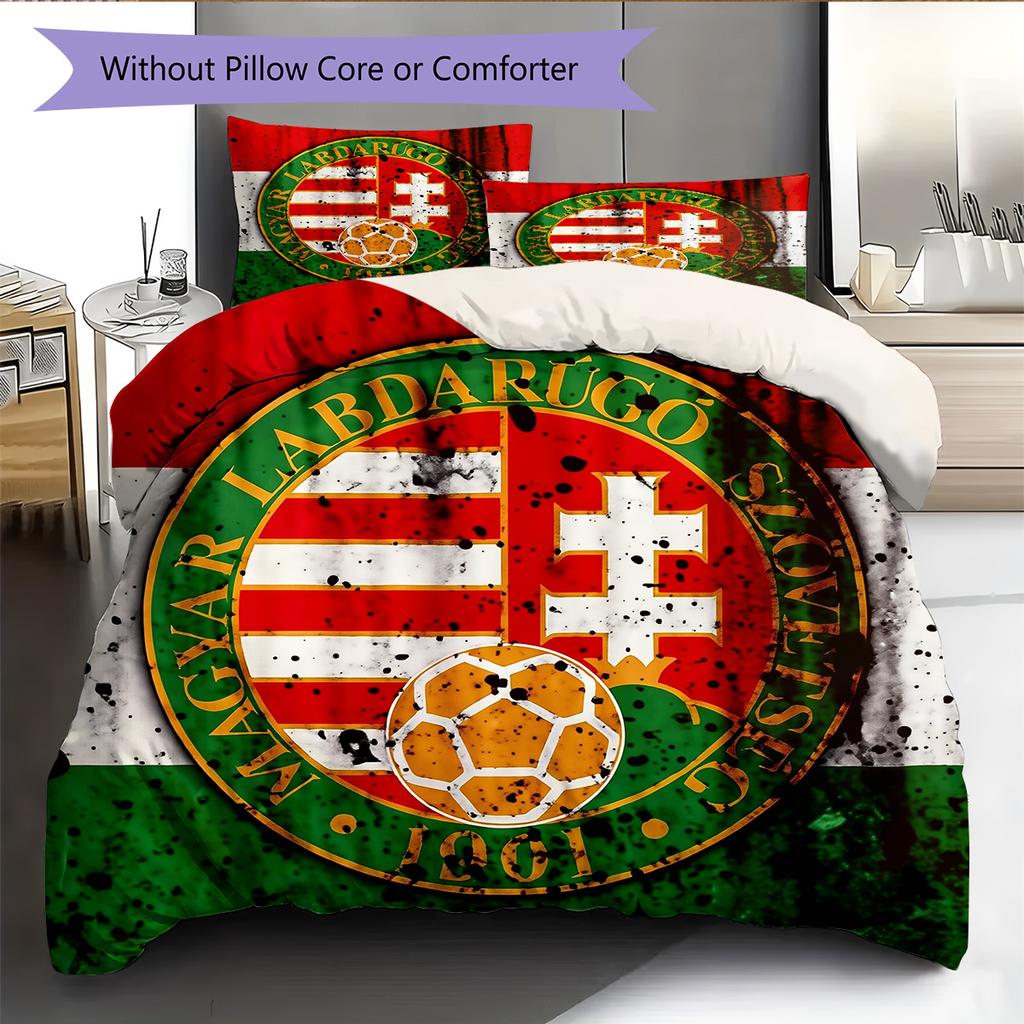 Hungary National Football Team Pattern Bedding Quilt Set Home Decoration Gift (1 * duvet cover + 2 * pillowcase without core)