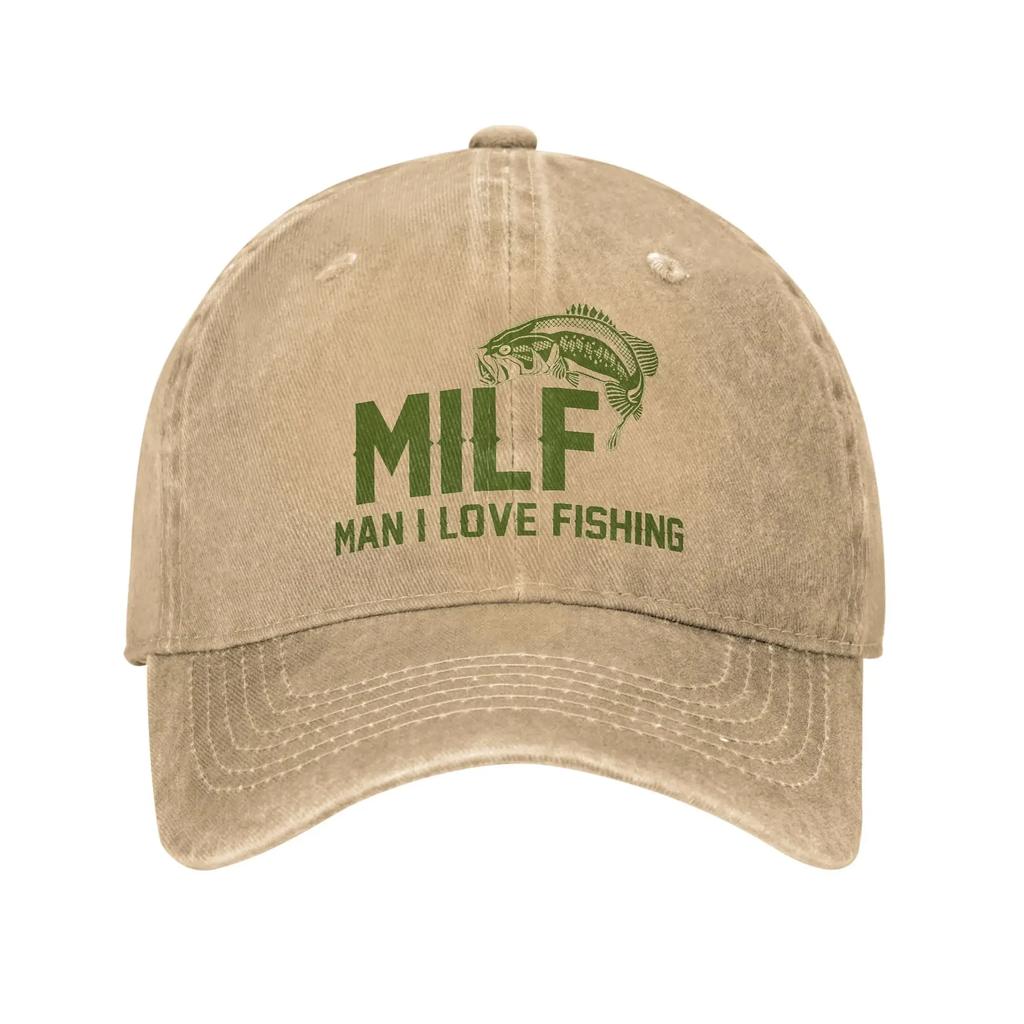 MILF Man I Love Fishing Men Women Baseball Caps Distressed Washed Caps Hat Outdoor Workouts Unstructured Soft Snapback Cap