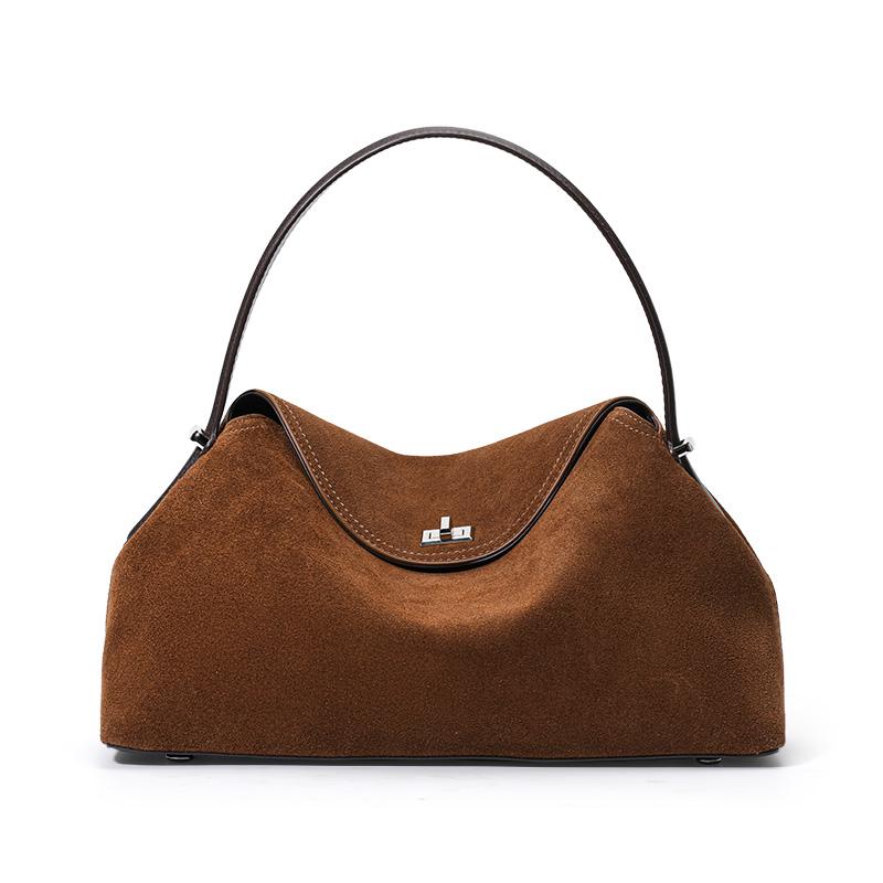 Brown Suede-Finish Cowhide Handbag – Minimalist, Lightweight, and Elegant Shoulder Bag for Women