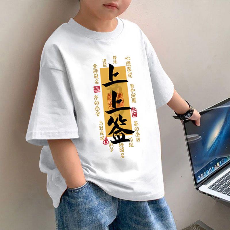 Fashionable T-shirt for baby boys and girls, retro printed red T-shirt for children