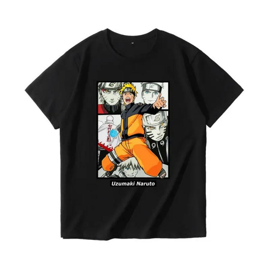 2025 Nová anime trička Naruto, sada topů s krátkým rukávem s potiskem Uzumaki Naruto a designem Skryté listové vesnice, ležérní streetwear