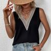 Letní halenky bez rukávů Žena Elegantní Košile Krajka s výstřihem do V Volné Kancelářské Dámské Tílka Móda Ležérní Hedvábné oblečení 24880