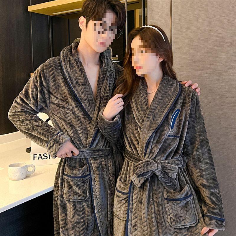 G5Z Winter Flannel Couple Robe: Men's Coral Fleece & Women's Plus Velvet Thick Warm Pajamas Bathrobe.