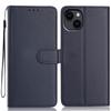 For iPhone 15 Wallet Case with Strap/Multiple Card Slots Solid Color Leather Stand Phone Cover