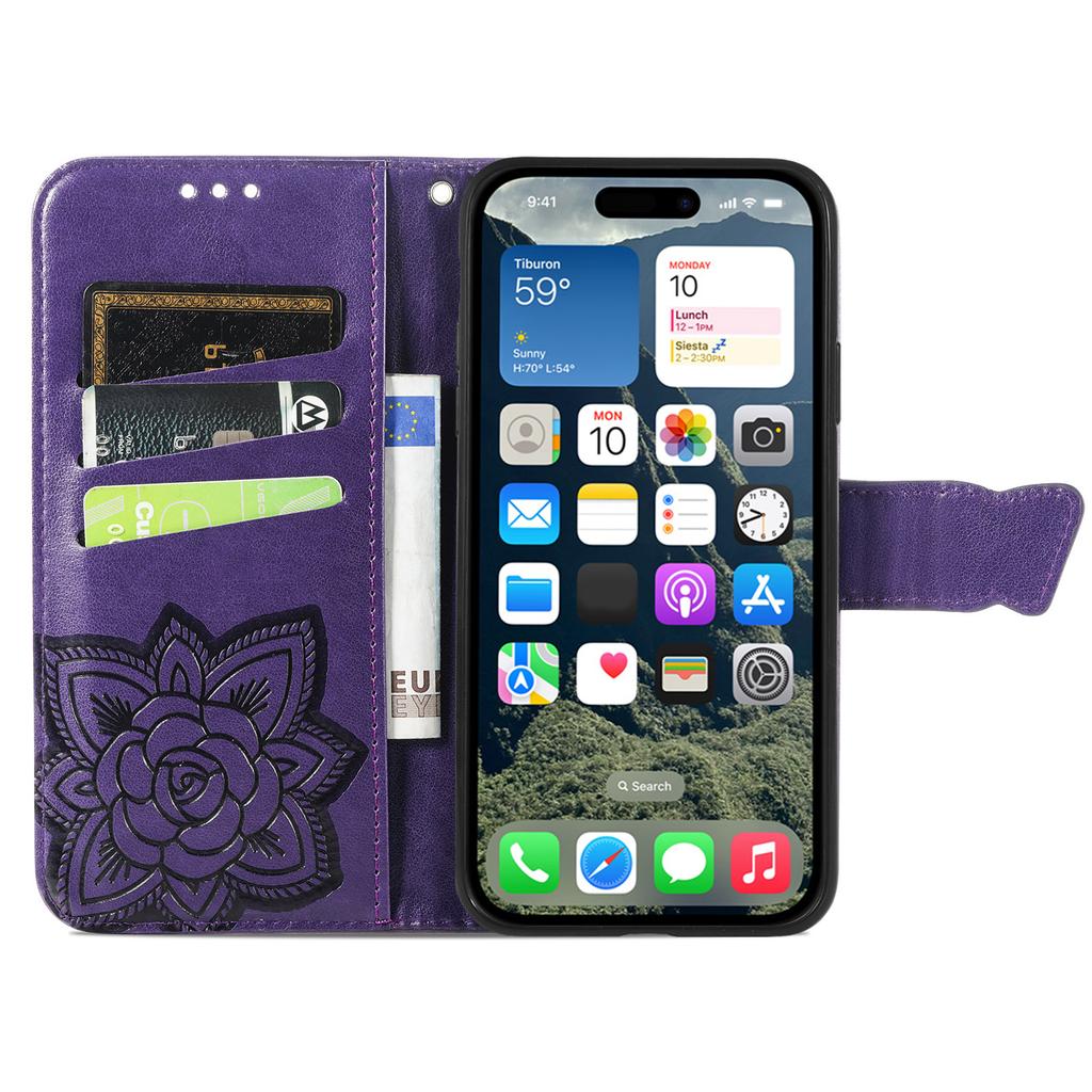 For iPhone 17 Case with Strap Butterfly Pattern PU Leather Wallet Phone Cover