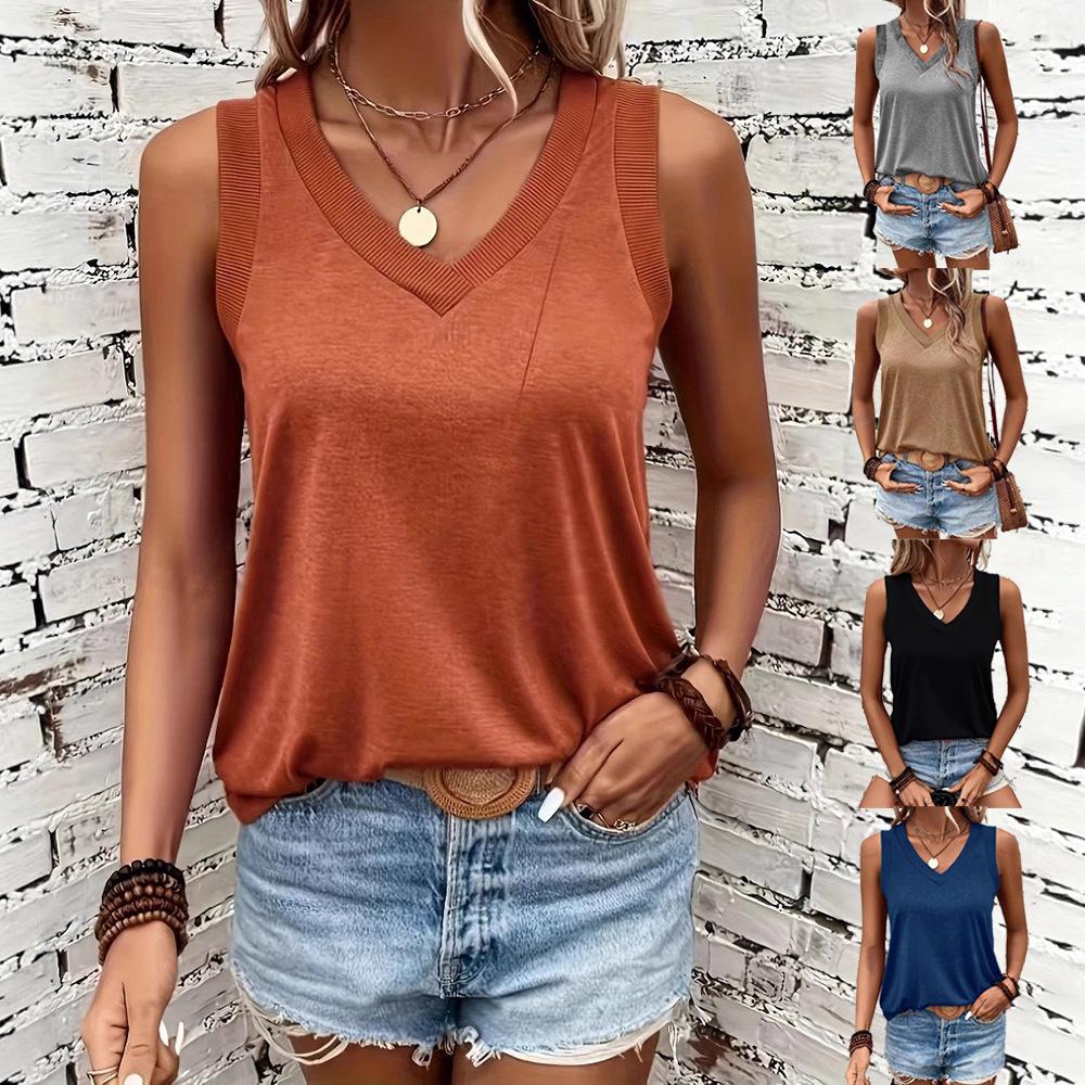 Summer Women's Casual Solid Color V-Neck Sleeveless Vest Women's Top