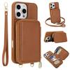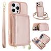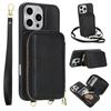 For iPhone 16 Pro Case RFID Blocking Zipper Wallet Leather + TPU Phone Cover with Shoulder Strap
