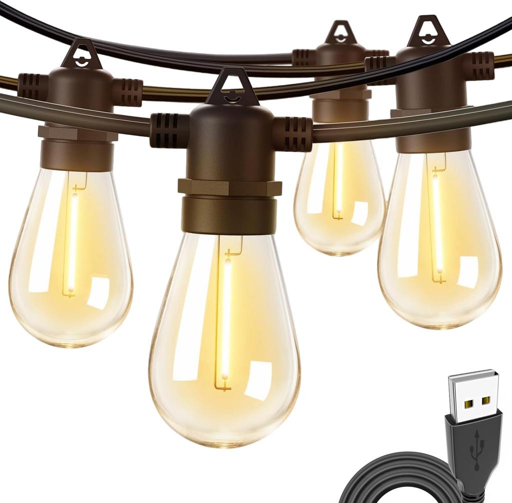 [Rainproof and Versatile] The IP65 waterproof design makes it suitable for indoor and outdoor use, regardless of the season. It can also be used as a garden light, for balconies, patios, gazebos, pergolas, parasols, tent decorations, and as a paper lantern light. The warm-colored light creates a retro, stylish feel, creating a moody atmosphere and instantly transforming any space into a lively one. It's perfect for summer festivals, food stalls, birthday parties, Halloween, Christmas trees, stores, and cafes. *Note: The USB port is not waterproof.