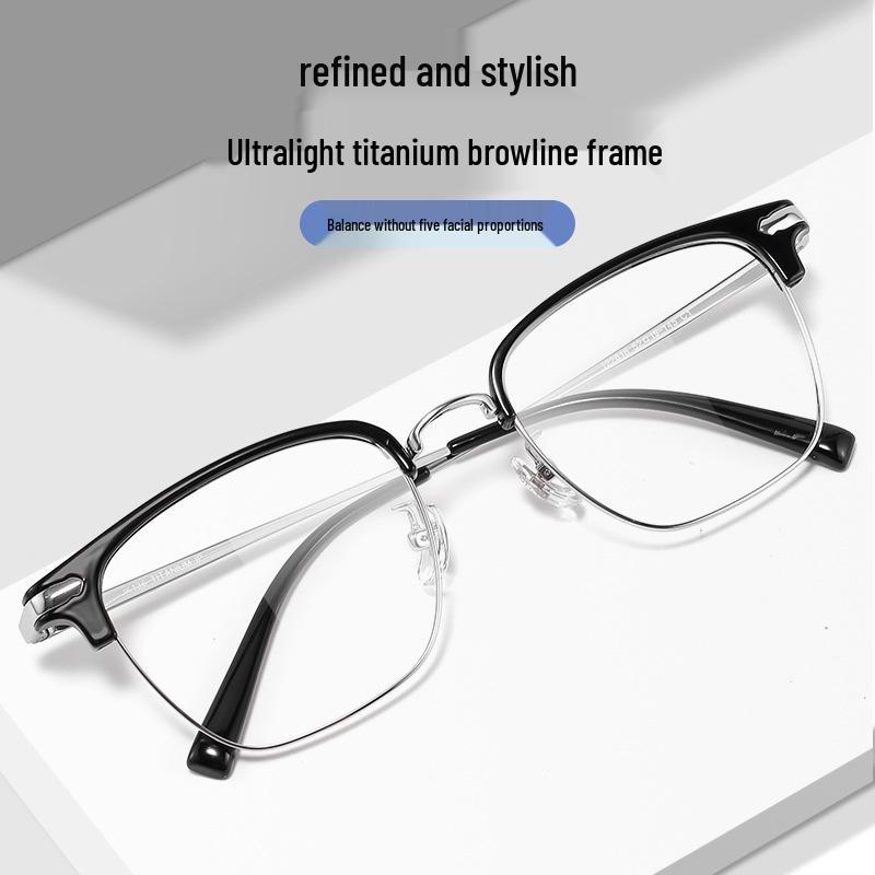 Anti-Blue Light Men's Eyebrow Eyeglass Frame, Ultralight Semi-Titanium, Lily Wei Model 122616Y, Fits Prescription Lenses.