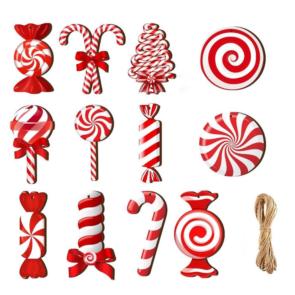 12Pcs New Wooden Christmas Tree Decoration Candy Cane DIY Xmas Pendant Red Hanging Candy Cane Decoration Home Decor