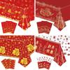 Plastic Chinese New Year TableCover Red Disposable Spring Festival Tablecloth Chinese Style Bronzing New Year Eve Decor