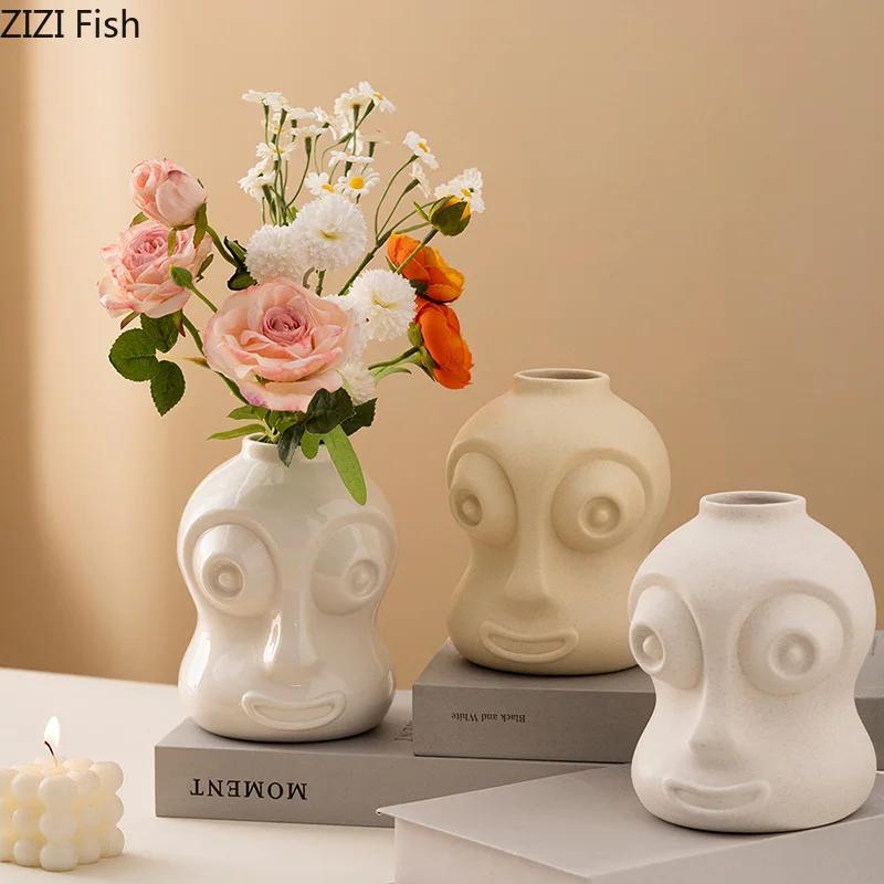 Creative Big Eyes Figures Ceramic Vase Plant Pots Table Decoration Flowers Arrangement Creative Floral Vase Room Aesthetic Decor