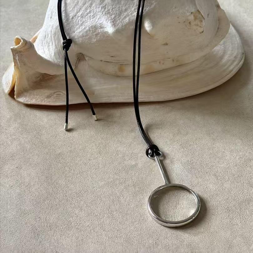 Dámský náhrdelník s přívěskem zvětšovací sklo v blogger stylu na dlouhé kožené šňůrce - Unikátní, luxusní doplněk