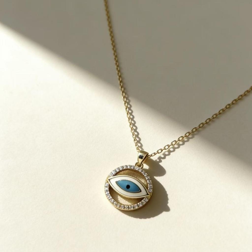 2025 pozlacený měděný náhrdelník s přívěskem oka z modrého zirkonu a reliéfním designem kapky oleje pro ženy