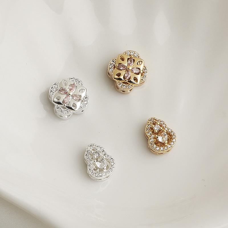 14K Gold Plated Zircon Gourd Spacer Beads & Four-Leaf Clover Crystal Necklace Bracelet DIY Jewelry Accessories