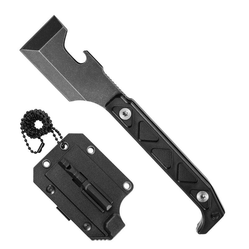 Multi-functional Outdoor EDC with Bottle Opener, Whistle, Chain, Shovel, Knife, Ice Hammer, and Straight Knife.