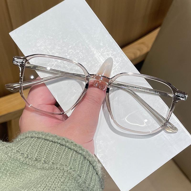 Women's Korean Polygonal Glasses, Myopia/Plano Lenses, Anti-Blue Light, Slimming for Large Faces, TR90 Bare Face Frame