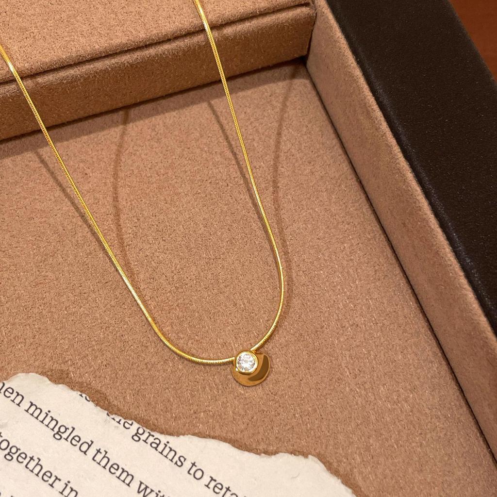 Přívěsek se zirkony ze 18K zlata a sterlingového stříbra na minimalistickém řetízku hadí kosti - Dámský elegantní bublinkový klíční kostní náhrdelník