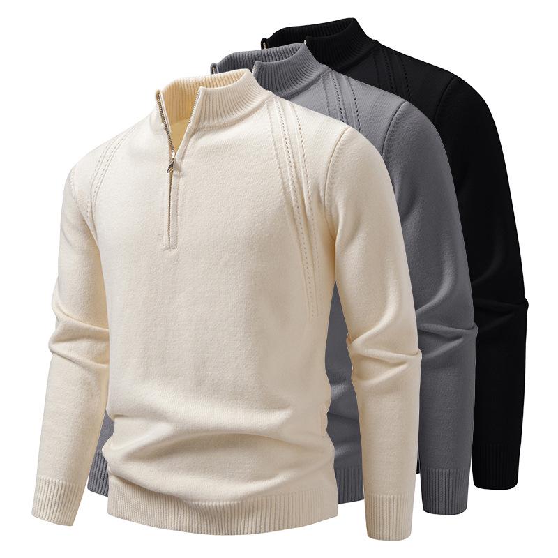 This men's sweater is perfect for the cooler months of autumn and winter, offering a blend of European and American casual style. With its loose fit and long sleeves, this knit pullover provides comfort and ease of movement. The standard thickness ensures warmth without being too bulky. Made from polyester material, the sweater features a stand collar and a half-zip design, adding a touch of modern style. The interior includes a chemical fiber blended fur lining, enhancing its coziness and warmth. Ideal for laid-back outings or casual gatherings, this sweater is a versatile addition to any wardrobe.