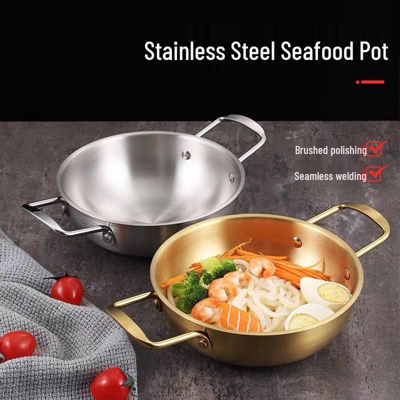 Korean Seafood Hot Pot: Stainless Steel Gold Soup Pot for Gas or Induction Stoves, Ideal for Noodles, Ramen, and Army Stew.