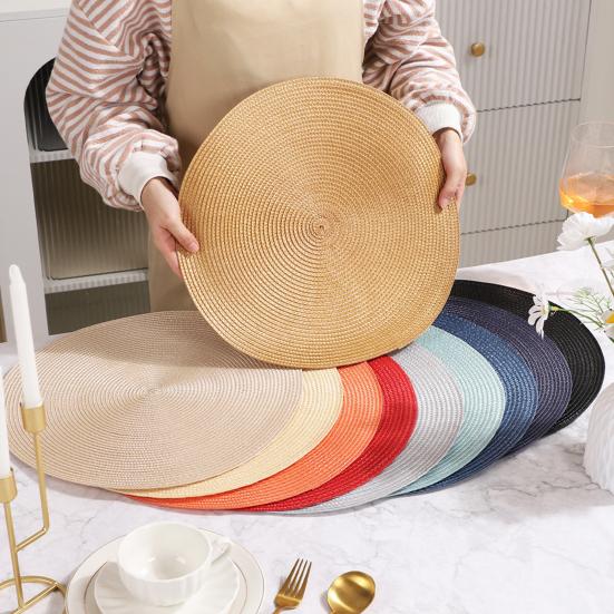Kulaté tkané PP prostírání, žáruvzdorné a olejotěsné, jednoduché jednobarevné prostírání na stůl pro jídelní kuchyňský stůl, moderní bytové dekorace