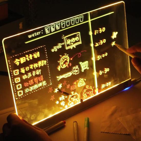 Elegantní a stylový design: Průhledná akrylová úprava v kombinaci s živými LED světly nabízí současnou estetiku vhodnou pro domy, kanceláře, učebny nebo komerční prostory.. Tato nástěnka nejen organizuje, ale také vylepšuje dekor každé místnosti, kterou zabírá.