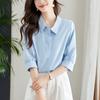 White Blouse Womens Seven-quarter Sleeves Latest Korean Version Lantern Sleeves Top Comfortable Fit Leisure Pure Cotton Blouse